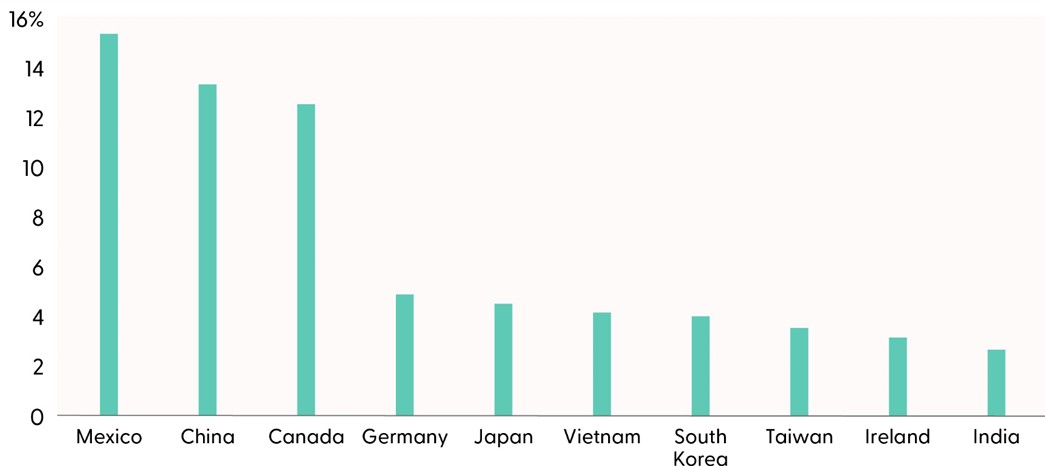 Going forward, investors need to track how U.S. trade policy morphs with Mexico and Canada. The U.S. imports roughly 28% of all goods from just these two countries, so the potential impacts from the tariffs will depend on the ultimately renegotiated USMCA trade agreement, as well as the flexibility and availability of alternative supplies for U.S. businesses and the extent of approved exceptions.